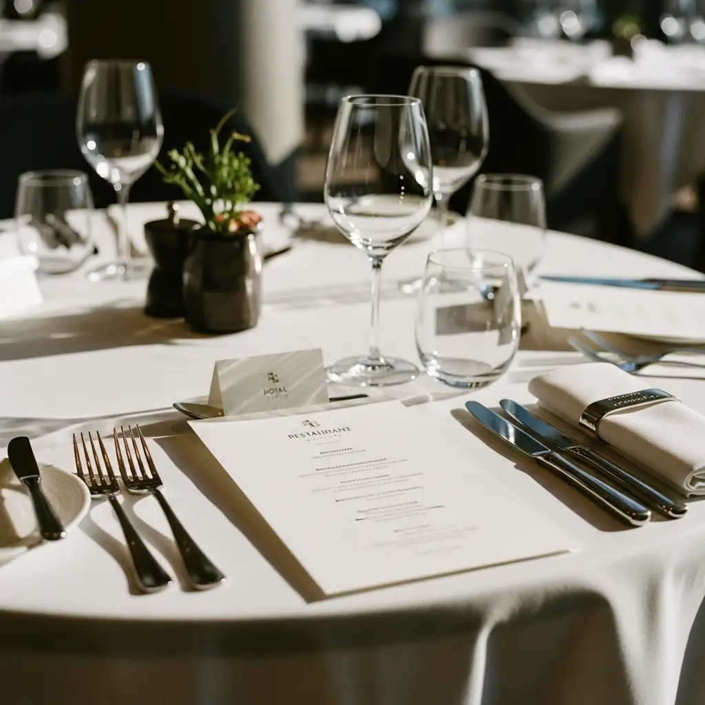 Ob Speise- und Getränkekarten, Türanhänger, Schlüsselkarten oder Flyer – wir gestalten und produzieren alles, was Ihr Haus stilvoll präsentiert und Ihren Gästen Orientierung gibt.